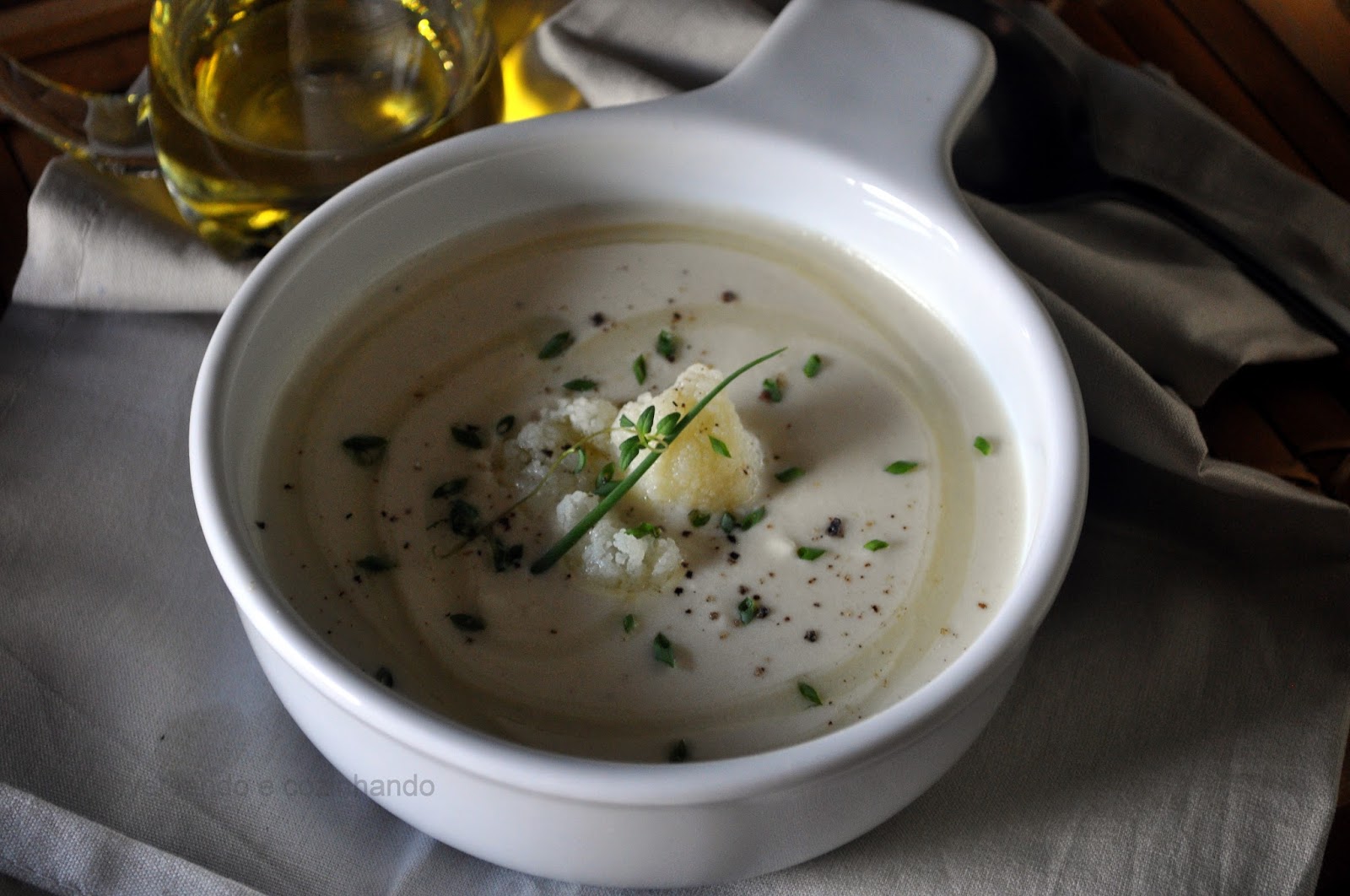 Sou louca com sopas. Qualquer tipo delas, mas já mais teria a ideia de fazer uma de couve-flor, se não fosse a Camila, minha gênia!