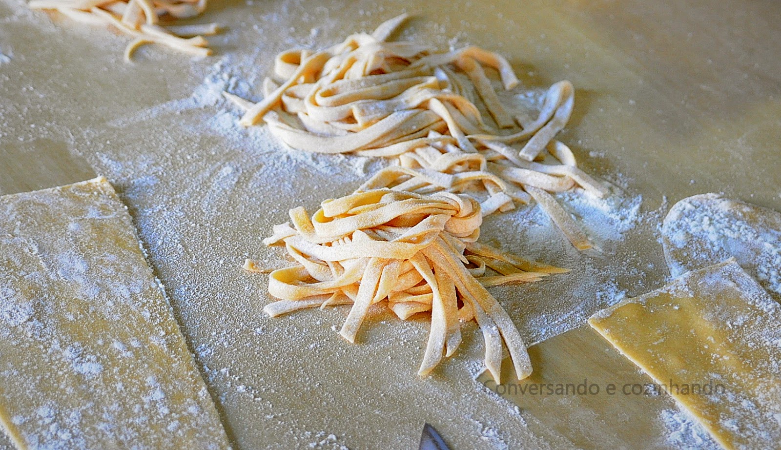 * Dependendo da largura em que a massa for cortada, é possível fazer vários tipos de talharins, lazanhas e até mesmo, rechear como capeletes e raviólis.