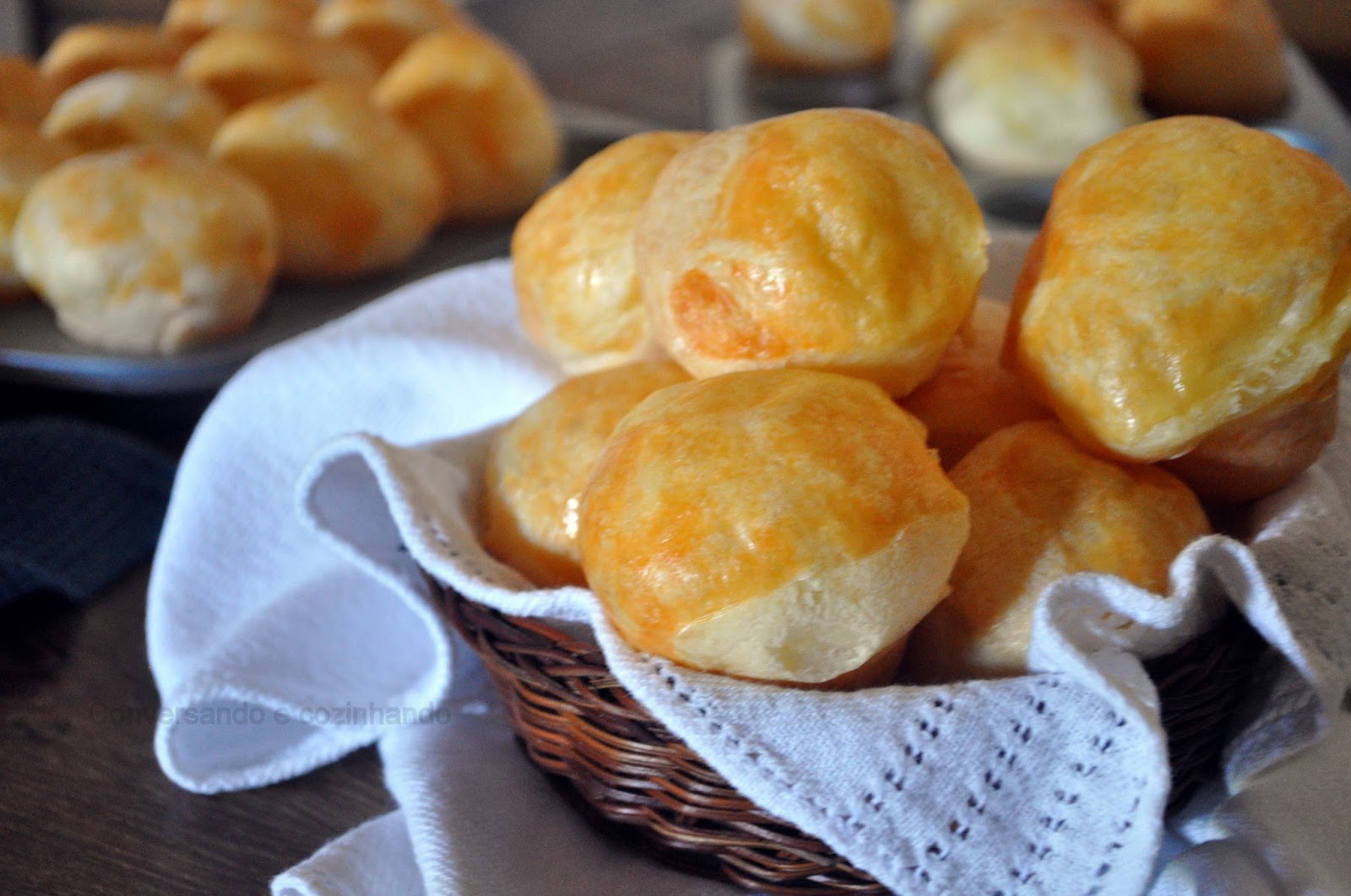 Esse é daqueles facinhos, que você não precisa colocar a mão na massa e ainda fica pronto em menos de meia hora. E se quiser, ainda dá para rechear e fica uma delícia!! Eu recheei alguns com um pouquinho de cobertura de goiabada que tinha sobrado do bolo de milho com recheio de requeijão. e ficou ótimo!